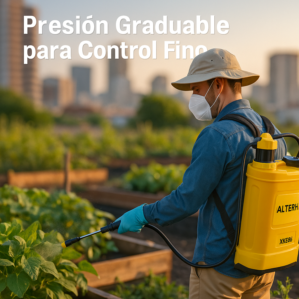 Fumigadora de espalda de 16 L con doble función (batería y manual). Bomba de diafragma, 22–58 PSI, caudal 3 L/min y autonomía hasta 4 h. Ideal para control de plagas, desinfección y riego dirigido en cultivos, jardines y espacios amplios.