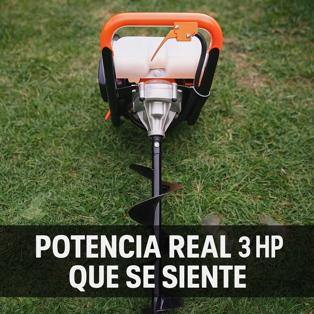 Potencia real 3 HP para perforar suelos compactos con menos esfuerzo.