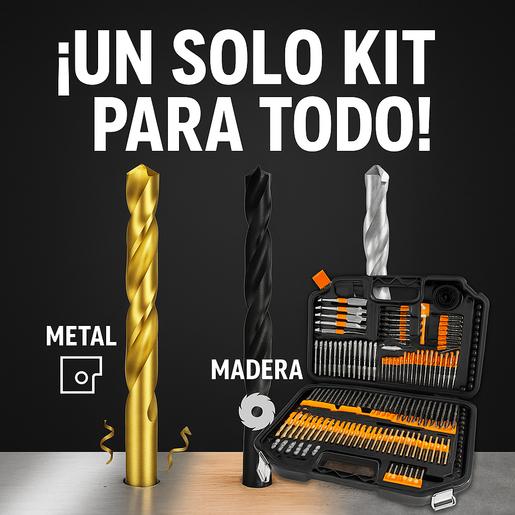 ¿Necesitás un kit que lo tenga TODO? Este juego de 246 piezas es una verdadera estación de batalla para perforar lo que se te atraviese: metal, madera, concreto o mampostería. Incluye brocas HSS de titanio y óxido negro, brocas para madera y planas, brocas para concreto y un arsenal brutal de puntas para destornillador. Todo bien organizado en un estuche plástico robusto, ideal pa' los que no perdonan en la obra ni en casa.
