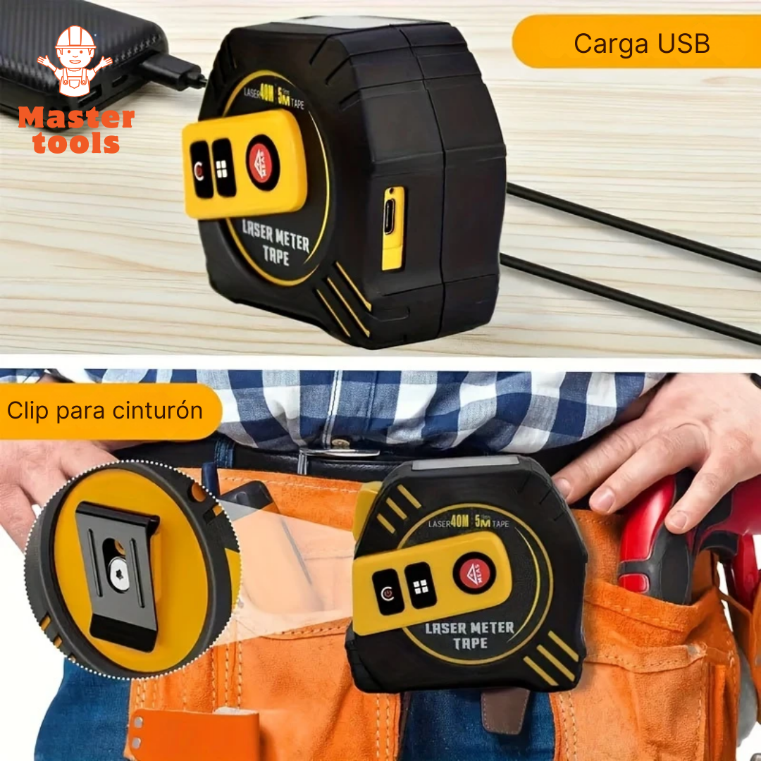 El Metro Láser Multifuncional es una herramienta de medición avanzada diseñada para ofrecer precisión, versatilidad y comodidad tanto a profesionales como a entusiastas del bricolaje. Este dispositivo combina la practicidad de una cinta métrica tradicional de 5 metros con la tecnología láser de alta precisión que alcanza hasta 40 metros, permitiendo medir distancias, áreas y volúmenes de manera eficiente. Fabricado con materiales resistentes como plástico reforzado con fibra de vidrio y una cinta de aluminio, este metro láser es duradero y fácil de transportar. Su pantalla digital nítida, batería recargable con carga USB tipo C y funciones avanzadas lo convierten en un aliado indispensable para proyectos de construcción, diseño interior, carpintería y más.