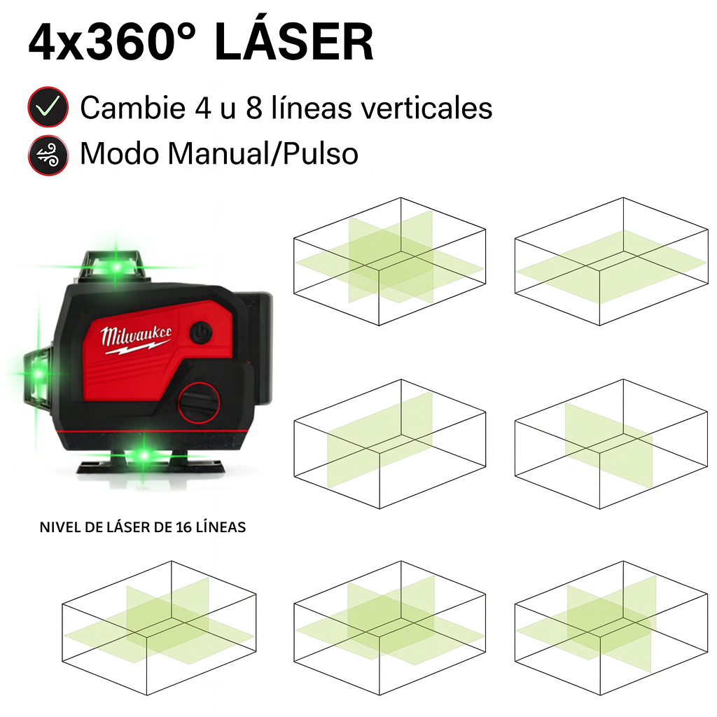 Nivel Láser Milwaukee 4D – 16 Líneas Verdes | Precisión Extrema + Tecnología Bluetooth